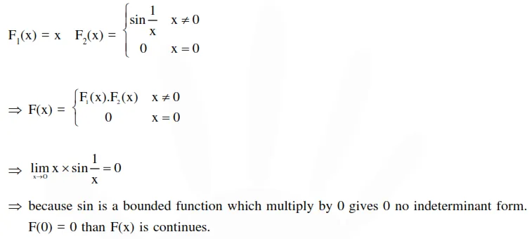 Define $\mathrm{F}(\mathrm{x})$ as the product of two real functions $f_{1}(x)=x, x \in \mathbb{R}$, and $f_{2}(x)=\left\{\begin{array}{ccc}\sin \frac{1}{x}, & \text { if } & x \neq 0 \\ 0, & \text { if } & x=0\end{array}\right.$ as follows : $F(x)=\left\{\begin{array}{cll}f_{1}(x) \cdot f_{2}(x) & \text { if } & x \neq 0 \\ 0, & \text { if } & x=0\end{array}\right.$
