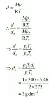 Hence, the density of the gas at STP will be 3 g dm–3.