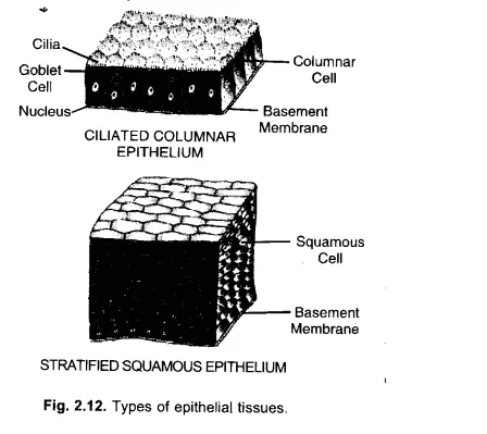 Describe the structure and function of different types of epithelial tissues. Draw well labelled diagrams.