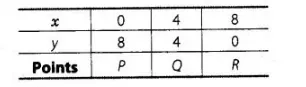 If $x=0$, then $y=8$; if $x=8$, then $y=0$ and if $x=4$, then $y=4$ Table for line $x+y=8$,