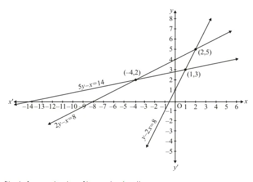 (i) $2 y-x=8,5 y-x=14$ and $y-2 x=1$