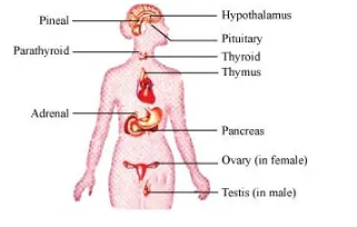 Diagrammatically indicate the location of the various endocrine glands in our body.