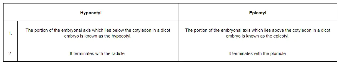 (a) Hypocotyl and epicotyl;