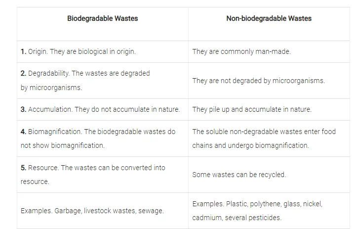 Differentiate between biodegradable and non-biodegradable substances. Give examples.