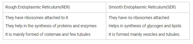 Differentiate between Rough Endoplasmic Reticulum (RER) and Smooth Endoplasmic Reticulum (SER).