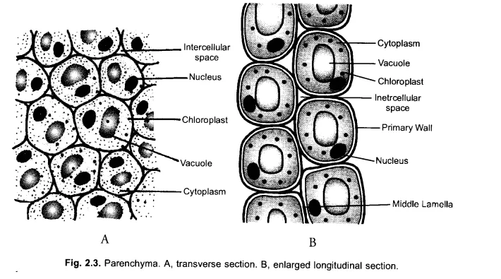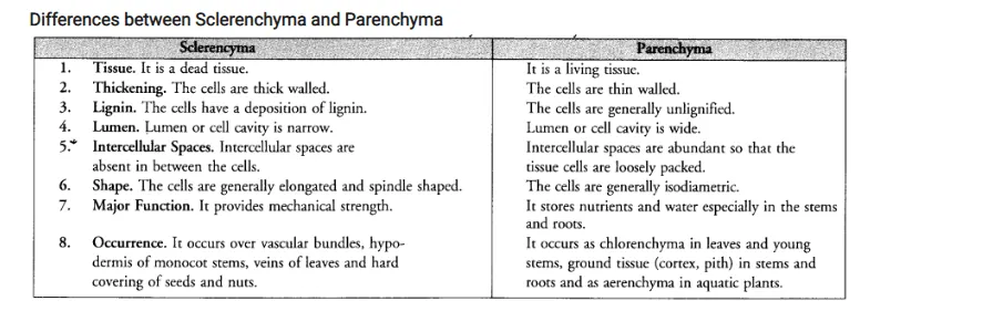 Differentiate between sclerenchyma and parenchyma tissue. Draw diagram as well.