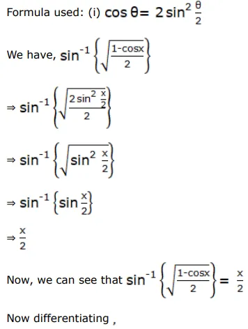To find: Value of $\sin ^{-1}\left\{\sqrt{\frac{1-\cos x}{2}}\right\}$