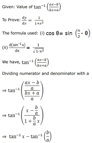 If $t=\tan ^{-1}\left(\frac{a x-b}{b x+a}\right)$, prove that $\frac{d y}{d x}=\frac{1}{\left(1+x^{2}\right)}$