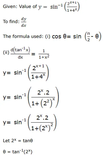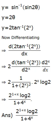 Differentiate $\sin ^{-1}\left(\frac{2^{x+1}}{1+4^{x}}\right)$ w.r. t. $x$
