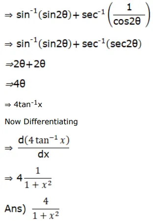 If $y=\sin ^{-1}\left(\frac{2 x}{1+x^{2}}\right)+\sec ^{-1}\left(\frac{1+x^{2}}{1-x^{2}}\right)$, show that $\frac{d y}{d x}=\frac{4}{\left(1+x^{2}\right)}$