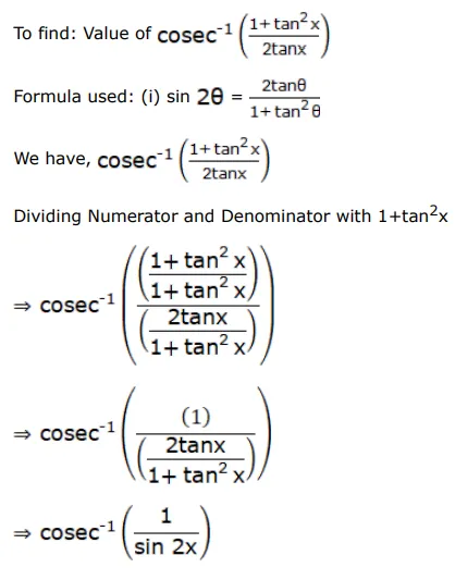 $\operatorname{cosec}^{-1}\left(\frac{1+\tan ^{2} x}{2 \tan x}\right)$