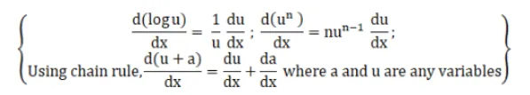 $\left\{\right.$ Using chain rule, $\frac{d(u+a)}{d x}=\frac{d u}{d x}+\frac{d a}{d x}$ where a and $u$ are any variables $\}$