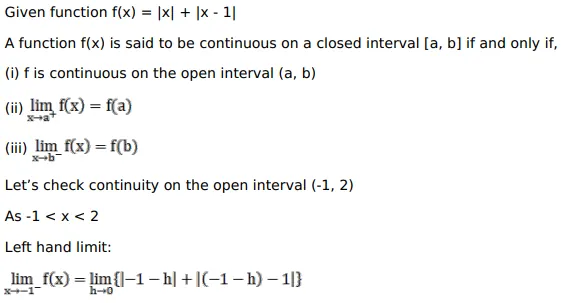 Discus the continuity of the function $f(x)=|x|+|x-1|$ in the interval of $[-1,2]$