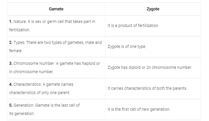Differences between Gamete and Zygote