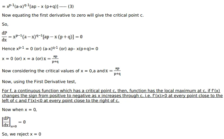 $=x^{p-1}(a-x)^{q-1}[a p-x p-x q]$