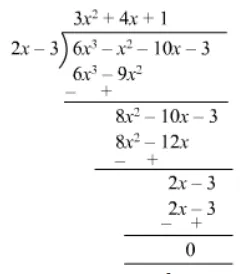 Divide 6x3 − x2 − 10x − 3 by 2x − 3 and find the quotient and remainder.