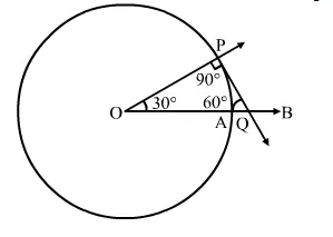 Step 5. Then, $\mathrm{PQ}$ is the desired tangent, such that $\angle O Q P=60^{\circ}$.