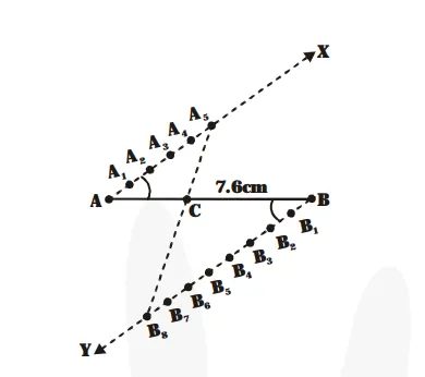 Draw a line segment of length 7.6 cm and divide it in the ratio 5 : 8. Measure the two parts.