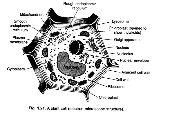 Draw a neat diagram of plant cell and label any three parts which differentiate it from animal cell.