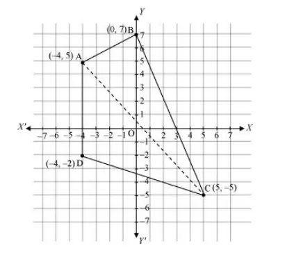 Let ABCD be the given quadrilateral with vertices A (–4, 5), B (0, 7), C (5, –5), and D (–4, –2).