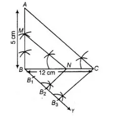 Draw a right ΔABC in which BC = 12 cm, AB = 5 cm and ∠B = 90°.Construct a triangle similar to it and of scale factor Is the new triangle also a right