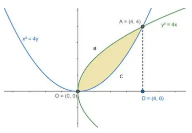 Draw a rough sketch and find the area of the region bounded by the parabolas $y^{2}=4 x$ and $x^{2}=4 y$, using the method of integration.