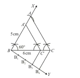 3. Keep compass at B and mark an arc of 5 cm at ray BX and name that point as A