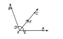 - Taking X as centre and any radius daw an arc to Intersect the rays XA and XB, say at E and D, respectively.