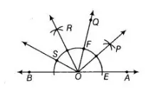 - Taking O as centre and any radius draw an arc which intersect OA at E and OO at F.