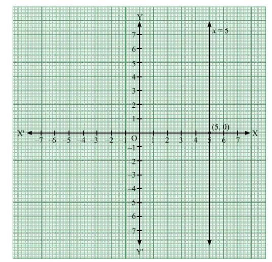 (vi) The equation of given line is x = 5. This equation does not contain the term of y. So, the graph of this line is parallel to y-axis passing through the point (5, 0).