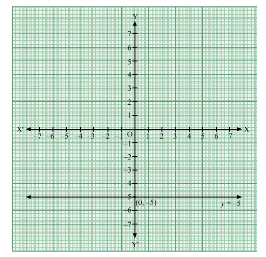 (vii) The equation of given line is y + 5 = 0 or y = –5. This equation does not contain the term of x. So, the graph of this line is parallel to x-axis passing through the point (0, –5).