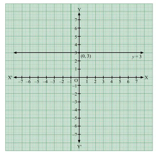 (iii) The equation of given line is y = 3. This equation does not contain the term of x. So, the graph of this line is parallel to x-axis passing through the point (0, 3).