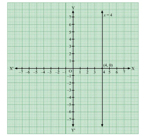 (i) The equation of given line is x = 4. This equation does not contain the term of y. So, the graph of this line is parallel to y-axis passing through the point (4, 0).