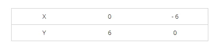 Substituting x = - 6 in y = 6 + x, we get y = 0