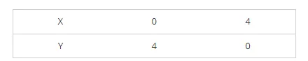 Substituting x = 4 in y = 4 - x, we get y = 0