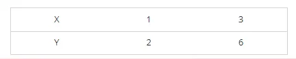 Thus, we have the following table exhibiting the abscissa and ordinates of points on the line represented by the given table