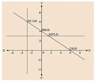 By plotting the given equation on the graph, we get the point B(0, 4) and C (6,0).