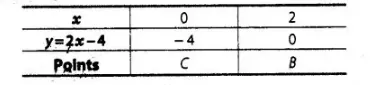 and table for line $2 x-y=4$,