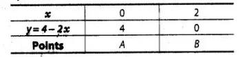 The given pair of llnear equations Table for line $2 x+y=4$,