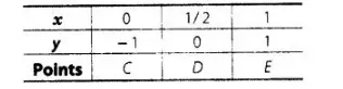 If $x=0$, then $y=-1$; if $x=\frac{1}{2}$, then $y=0$ and if $x=1$, then $y=1$