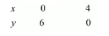 $x=0, \quad y=6$