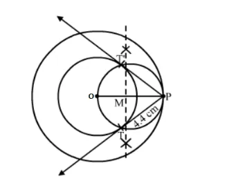 Thus, PT or P T'are the required tangents and measure 4.4 cm each.