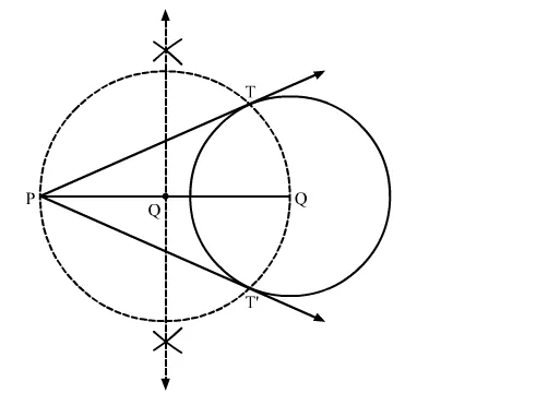 Step 4. Draw a circle with Q as centre and radius PQ (or OQ), to intersect the given circle at the points T and T'.