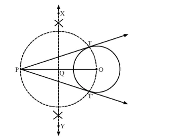 Step 3. Join OP. Draw the perpendicular bisector XY of OP, cutting OP at Q.