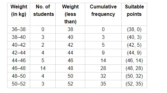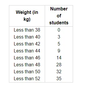 During the medical check up of 35 students of a class, their weights were recorded as follows: