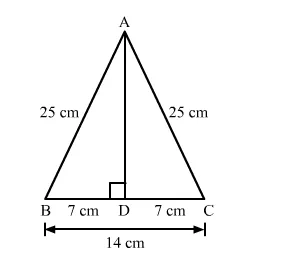 Each of the equal sides of an isosceles triangle is 25 cm. Find the length of its altitude if the base is 14 cm.