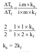 Elevation in the boiling point for 1 molal solution of glucose is $2 \mathrm{~K}$. The depression in the freezing point of 2 molal solutions of glucose in the same solvent is $2 \mathrm{~K}$. The relation between $\mathrm{K}_{\mathrm{b}}$ and $\mathrm{K}_{\mathrm{f}}$ is: