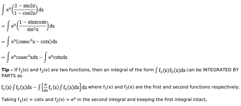 $\int \mathrm{e}^{\mathrm{x}}\left(\frac{2-\sin 2 \mathrm{x}}{1-\cos 2 \mathrm{x}}\right) \mathrm{dx}$