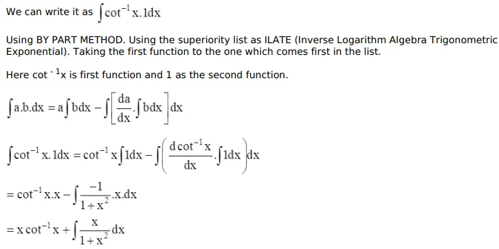 $\int \cot ^{-1} \mathrm{x} d \mathrm{x}$