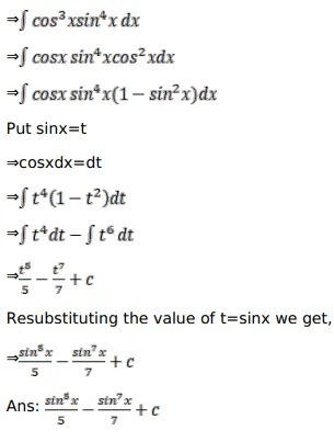 $\int \cos ^{3} x \sin ^{4} x d x$